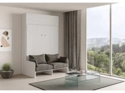 Armoire Lit Escamotable Vertical 160 Kentaro Sofa Avec ĂšlĂšment Haut FrĂȘne Blanc