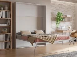 Lit Escamotable 160 X 200 Cm – Ouverture Verticale Manuelle – Blanc + Matelas – MALINA II