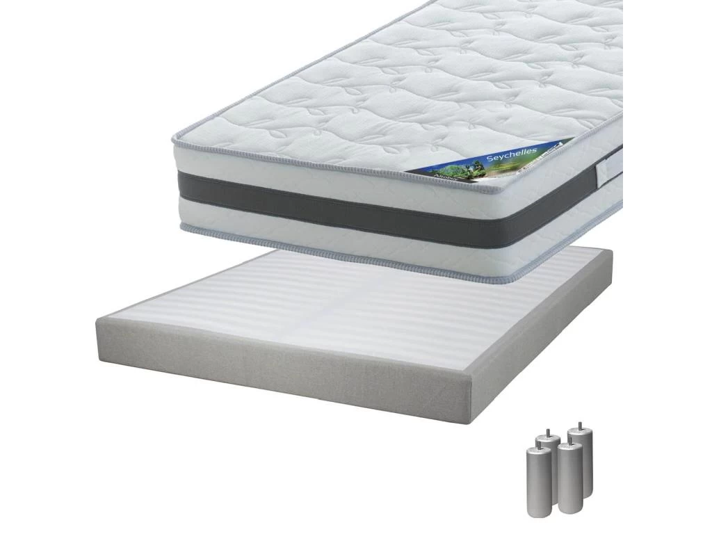 Matelas Seychelles : Mousse Aertech plus H:13,5 cm, densité 30 Kg/m3, Mousse à Mémoire H:5 cm, densité 43 Kg/m3, Housse supérieure et inférieure matelassée fixe composée de Tissu Stretch anti-acariens et hypoallergénique 100% polyester 180 g/m2, Rembourrage Thermoflex B 450 g/m2 (60% Coton, 40% polyester) et Bordage périmetral matelassé avec 4 poignées et bande aéeré 3D. Confort : Soutien ferme, accueil confortable – Hauteur 21 cm – GARANTIE 5 ANS.
