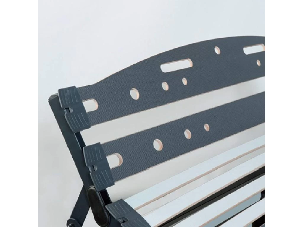 – Suspension : 11 lattes larges et épaisses (12,5 mm) en bois multi-plis perforées finition « graphite »