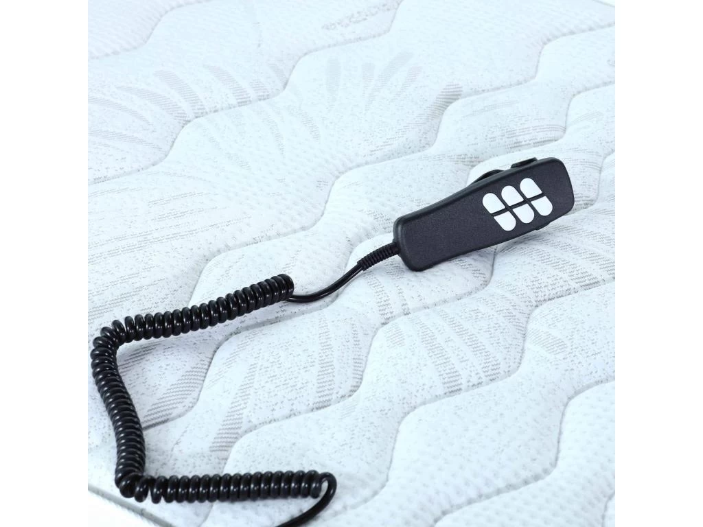 Sommier électrique de relaxation en bois, équipé d’arrêts matelas et d’un boitier commande filaire. Tête et pieds relevables, moteur 2×4000 N et pieds inclus.